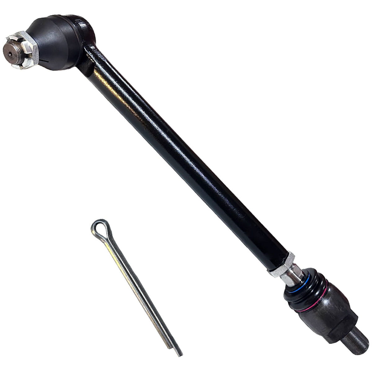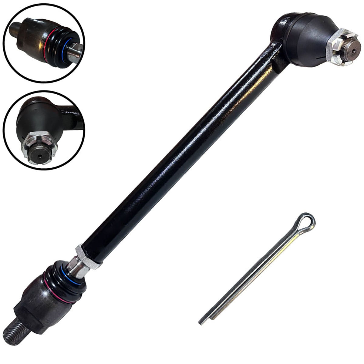 A barra de direção é um componente fundamental do sistema de direção, responsável por transmitir o movimento da caixa de direção para as rodas, permitindo o direcionamento preciso do equipamento. Ela atua interligando os lados do eixo dianteiro, garantindo que ambas as rodas girem de forma sincronizada e estável.